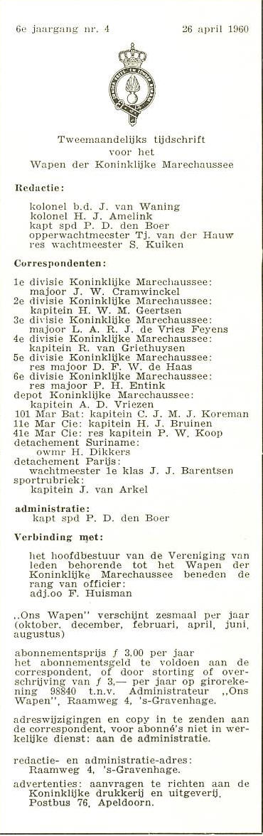 Sporen uit de 6e Jaargang nummer 4 van Ons Wapen van 26 april 1960
