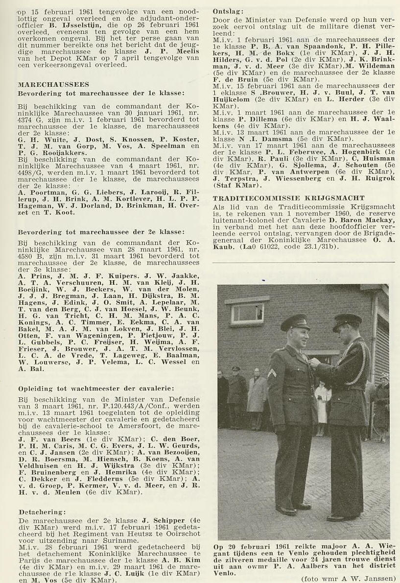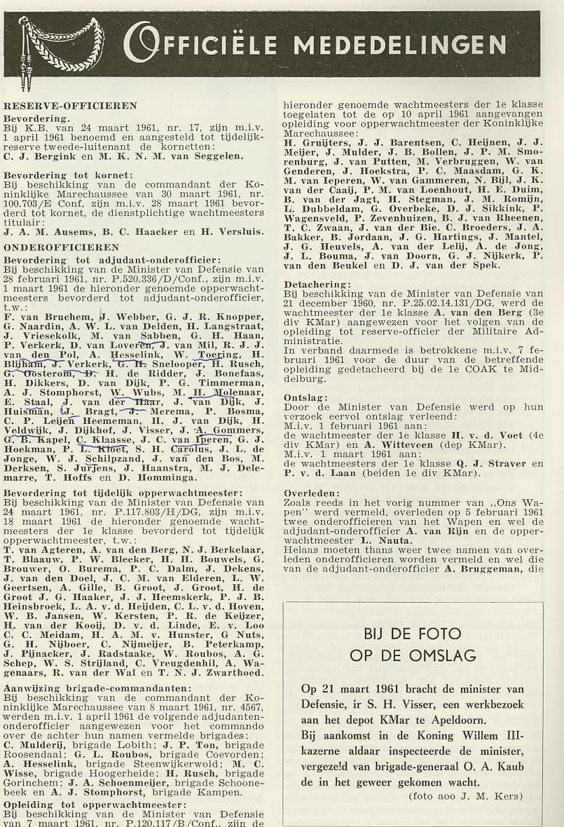 Sporen uit de 7e Jaargang nummer 4 van Ons Wapen van 26 april 1961.