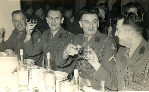 Personeel Brigade Leeuwarden begin jaren 1950 Zittend van li naar re; Tijsma, Braaksma, Blaauw, Solkema,Rinck, Meems. Stnd.vlnr. onbekend.
