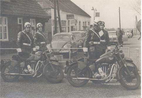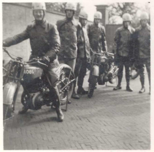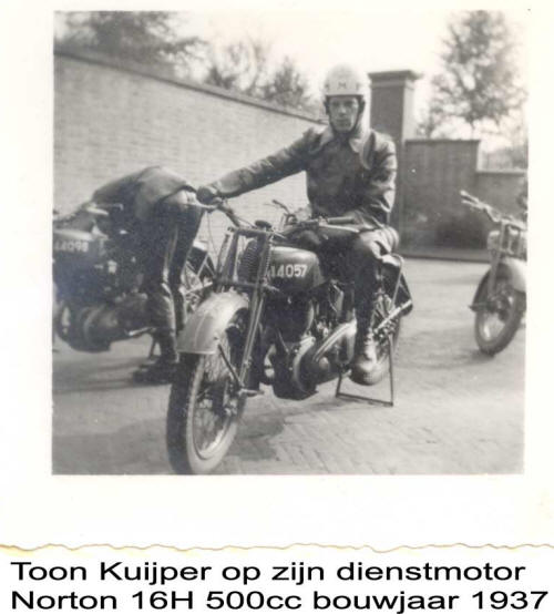 Toon Kuijper als marechaussee der 2e klasse op de 1947 stammende Matchles G80.