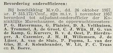 In 1941 werd de Rijksveldwacht door de Duitse bezetter bij de Marechaussee gevoegd. Na de oorlog werd opa tijdelijk bij de Rijkspolitie geplaatst maar op 1 juli 1946 werd hij aangesteld als tijdelijk opperwachtmeester bij de Kon.Marechaussee. Op 2 december 1949 werd hij bevorderd tot effectief opperwachtmeester. Op 1 november 1957 werd hij bevorderd tot adjudant-onderofficier. Hij was Brigadecommandant in Weert, Roermond en Echt. Zoals al gezegd, ging hij in 1965 met pensioen. Op "Schrikkeldag" 29 februari 1996 stierf mijn grootvader in Echt. Hij was 88 jaar oud. (tekst Geert-Jan Kurvers Klnzn van Gerard Kurvers)