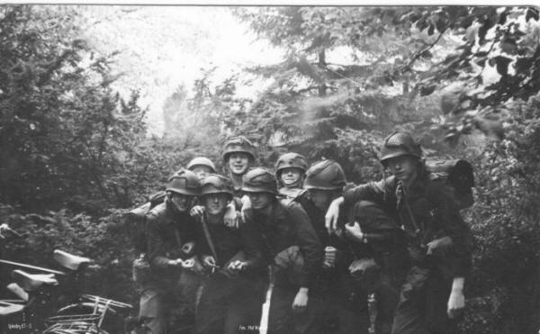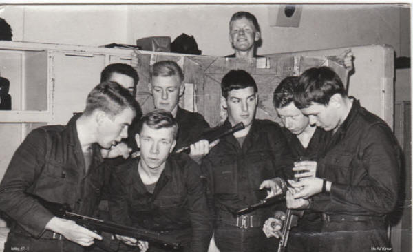 vlnr: Wim Werker, Rob Scholten, Leo Wijnhoven en Mat Warnaar. Wie herkent deze jonge marechaussees op deze en volgende foto's.