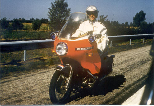 Marechaussee Henk Hogeslag op de Harley Davidson Liberator liggend in