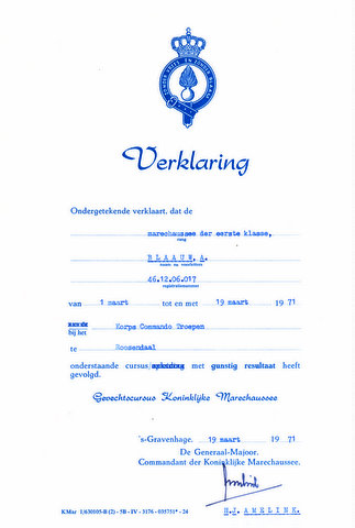 Korps Commando Troepen voor opleiding wachtmeester KMar.