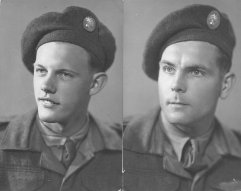 Rechts Tijmen Blaauw. Opmerkelijk baret embleem.