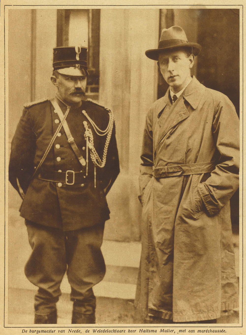 de Stationsweg. Vlnr: wachtmeester H. Harmsen,