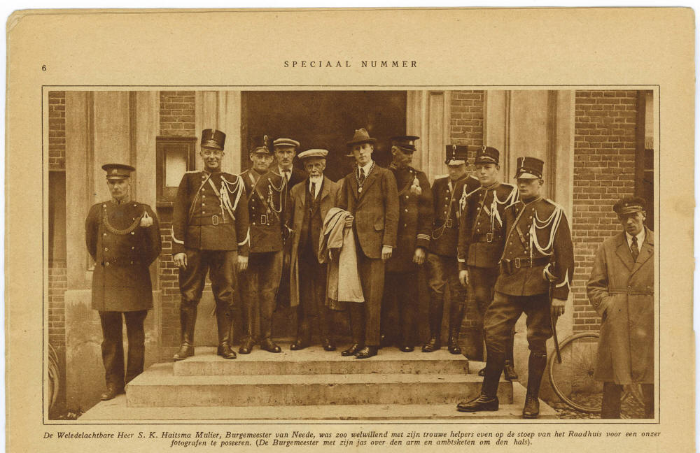 Op de trap van het stadhuis van Neede. Uiterst links