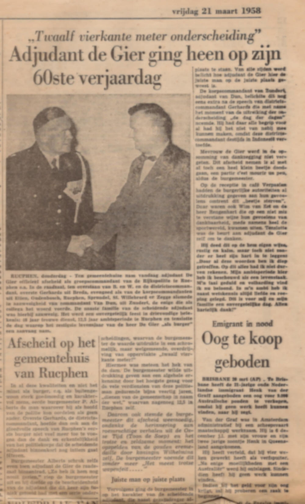21 maart 1958 . Krantenbericht "einde loopbaan