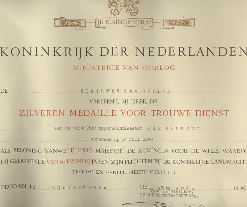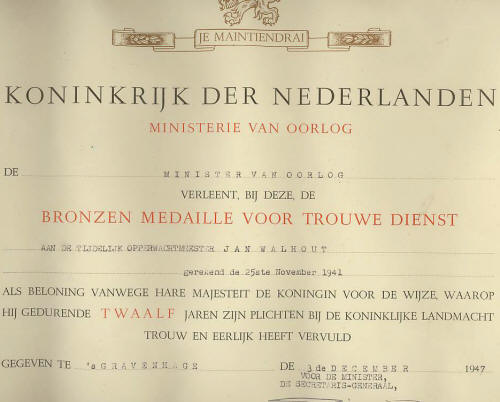 Hare Majesteit de Koningin Grootmeester der orde van Oranje - Nassau Heeft bij haar besluit van 30 maart 1990 nr.90.008145 De Eremedaille verbonden aan de Orde van Oranje - Nassau