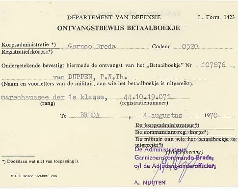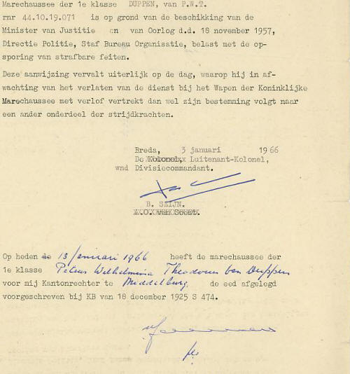 Uniek stuk betreffende de Marechaussee S.F.Hav enga